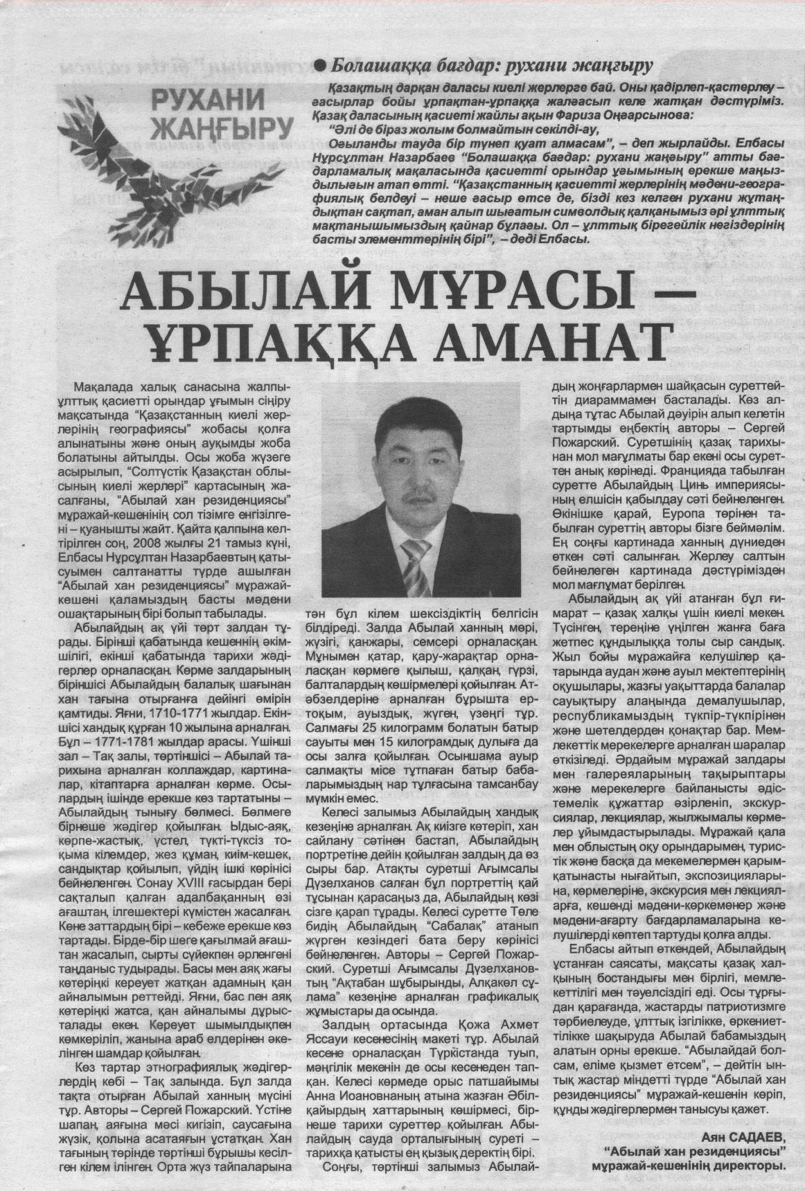 Мақалада халық санасына жалпыұлттық қасиетті орындар ұғымын сіңіру мақсатында “Қазақстанның киелі жерлерінің географиясы” жобасы қолға алынатыны және оның ауқымды жоба болатыны айтылды. Осы жоба жүзеге асырылып, “Солтүстік Қазақстан облысының киелі жерлері” картасының жасалғаны, “Абылай хан резиденциясы” мұражай-кешенінің сол тізімге енгізілгені – қуанышты жайт. Қайта қалпына келтірілген соң, 2008 жылғы 21 тамыз күні, Елбасы Нұрсұлтан Назарбаевтың қатысуымен салтанатты түрде ашылған “Абылай хан резиденциясы” мұражай-кешені қаламыздың басты мәдени ошақтарының бірі болып табылады.